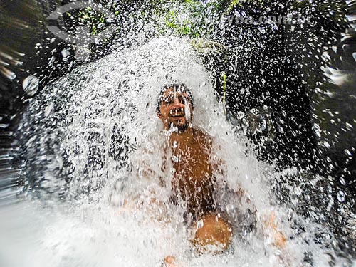 Man making a selfie during river bath - Serrinha do Alambari Environmental Protection Area - Resende city - Rio de Janeiro state (RJ) - Brazil