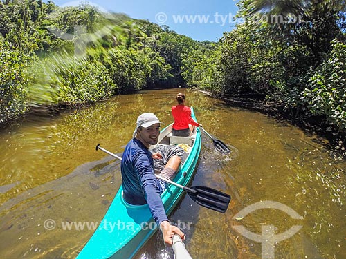 •  Couple making a selfie in kayak - mangroves of the Grande River (Big River) - Saco do Mamangua  - Paraty city - Rio de Janeiro state (RJ) - Brazil