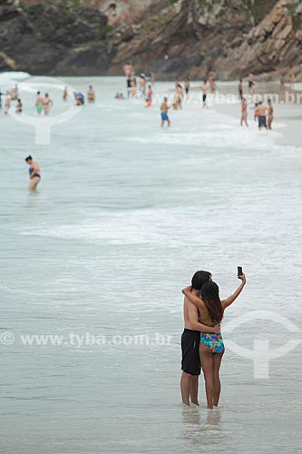 Couple making a selfie - Pontal do Atalaia Beach waterfront - Arraial do Cabo city - Rio de Janeiro state (RJ) - Brazil