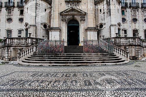•  Detail of the sidewalk of Stone Portuguese opposite to Nossa Senhora da Conceicao da Praia Basilica (1849)  - Salvador city - Bahia state (BA) - Brazil