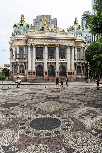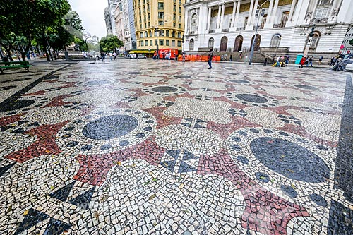 •  Sidewalk of Stone Portuguese - Cinelandia Square with the Municipal Theater of Rio de Janeiro (1909) in the background  - Rio de Janeiro city - Rio de Janeiro state (RJ) - Brazil