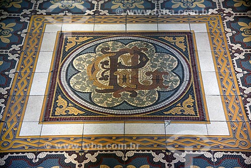 Detail of mosaic - entrance of the Royal Portuguese Reading Room (1887) - Rio de Janeiro city - Rio de Janeiro state (RJ) - Brazil