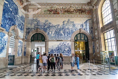 Portuguese tiles panel inside of the Sao Bento train station - Porto city - Porto district - Portugal