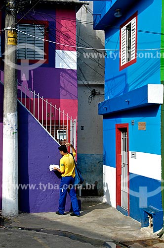 Subject: Postman delivering correspondences in the community of Heliopolis / Place: Sao Paulo city - Sao Paulo state (SP) - Brazil / Date: 07/2004