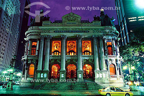 The "Teatro Munipal" (Municipal Theater)* - Rio de Janeiro city Downtown by night - Rio de Janeiro state - Brazil * Inaugurated in 1909, the Municipal Theater Building design was inspired by the "Opera de Paris".