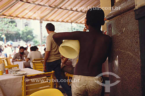 •  Social problem - street boy looking at other people eating in a restaurant - Cinelandia -  center of Rio de Janeiro city - Rio de Janeiro state - Brazil