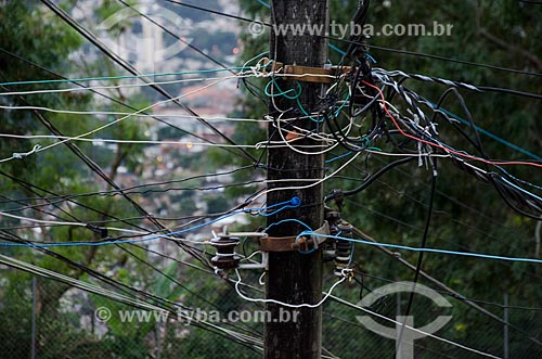 Subject: Lamppost with electric wire in Prazeres Hill / Place: Santa Teresa neighborhood - Rio de Janeiro city - Rio de Janeiro state (RJ) - Brazil / Date: 07/2013