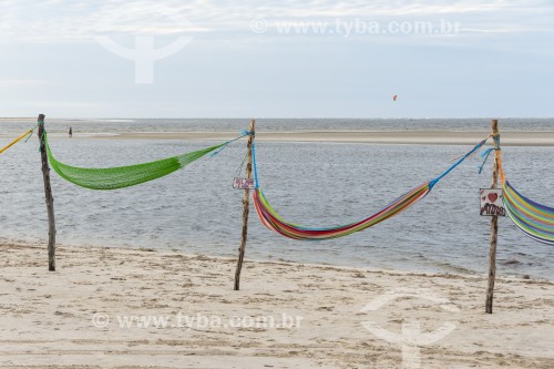 • Hammocks to relax on Atins beach near to Lencois Maranhenses National Park  - Barreirinhas city - Maranhao state (MA) - Brazil