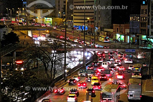 Traffic jam - Prestes Maia Avenue during the sunset - Sao Paulo city - Sao Paulo state (SP) - Brazil