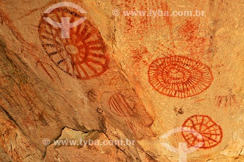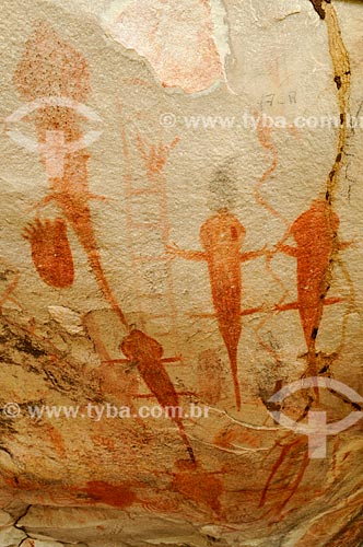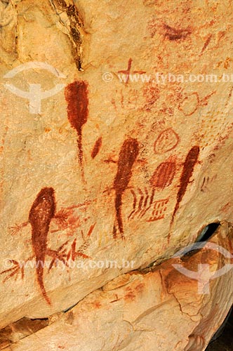 Rupestrian drawings - Grutas das Araras Archaeological Site - Serranopolis city - Goias state (GO) - Brazil