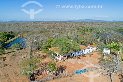 Picture taken with drone of the Farm Nao me Deixes - that belonged to Rachel de Queiroz - Quixada city - Ceara state (CE) - Brazil