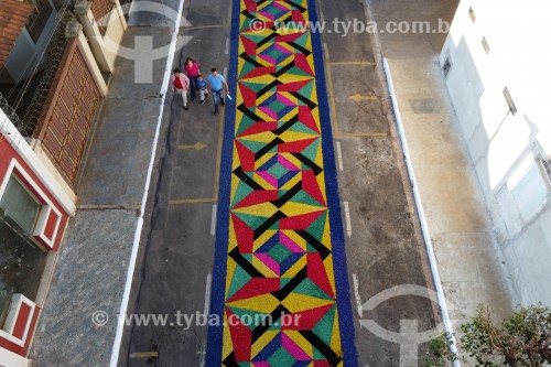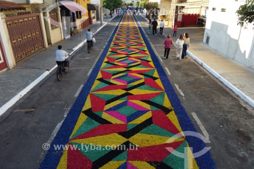 • Picture taken with drone of street decorated for Corpus Christi procession - Potirendaba city - Sao Paulo state (SP) - Brazil