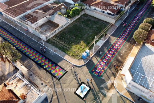• Picture taken with drone of the streets decorated for Corpus Christi procession - Potirendaba city - Sao Paulo state (SP) - Brazil