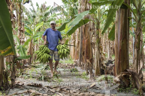 • Small producer harvesting bananas in the Sezinio Fernandes de Jesus Settlement - Linhares city - Espirito Santo state (ES) - Brazil