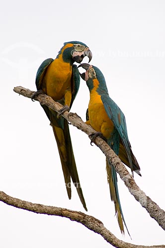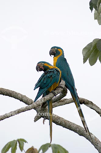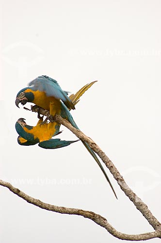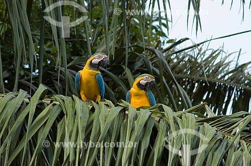 Subject: Couple of Blue-and-yellow Macaws (Ara ararauna), in a forest island / Place: Department of Beni - Bolivia / Date: 11/2005