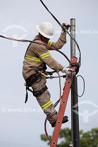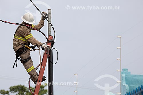 Workers doing maintenance of public lighting - Floresta city - Pernambuco state (PE) - Brazil