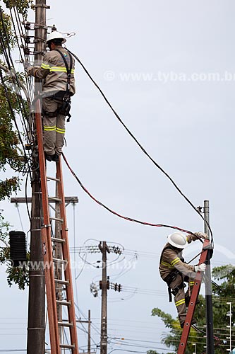 •  Workers doing maintenance of public lighting  - Floresta city - Pernambuco state (PE) - Brazil