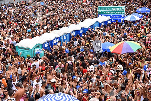 Queue to use of the chemical toilet - Erasmo Braga Avenue during Cordao do Bola Preta carnival street troup parade - Rio de Janeiro city - Rio de Janeiro state (RJ) - Brazil
