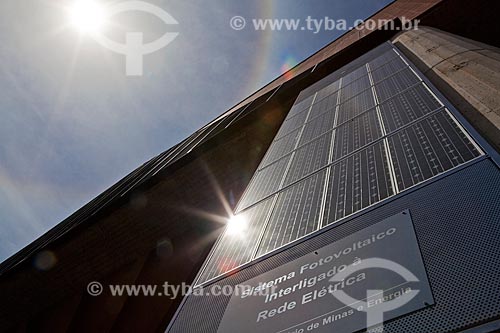 Subject: Panel for solar energy catchment (photovoltaic system interconnected with electric wires) on the facade of the Museum of science and technology of PUC - RS / Place: Porto Alegre city - Rio Grande do Sul state (RS) - Brazil / Date: 26/09/11