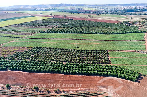 Picture taken with drone of the orchard of carambola, pumpkin plantation and orchard of mango in the background - Taquaritinga city - Sao Paulo state (SP) - Brazil