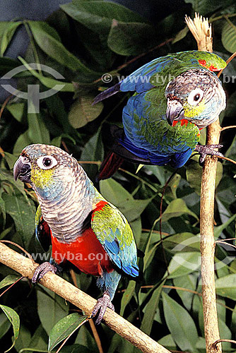 (Pyrrhura perlata rhodogaster or Pyrrhura perlata perlata) (Sclater) - Crimson-Bellied Conures, mature - Amazonian region - Brazil