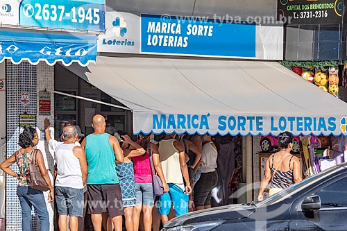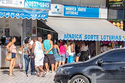 Queue of bettors opposite to lottery retailers - Marica city - Rio de Janeiro state (RJ) - Brazil