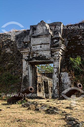 •  Subject: Cannon from the Fort of Nossa Senhora dos Remedios with Remedios Village in the background / Place: Fernando de Noronha Archipelago - Pernambuco state (PE) - Brazil / Date: 10/2013