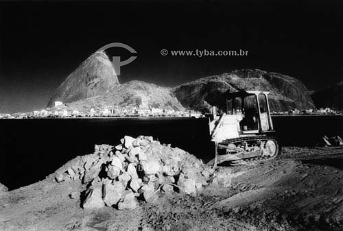 Tractor - Sugar Loaf Mountain* in the background - Rio de Janeiro city - Rio de Janeiro state - Brazil *Commonly called Sugar Loaf Mountain, the entire rock formation also includes Urca Mountain and Sugar Loaf itself (the taller of the two). This w