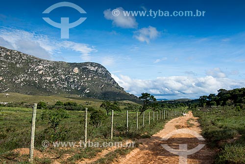 •  Dirt road with mountains in the background  - Santana do Riacho city - Minas Gerais state (MG) - Brazil