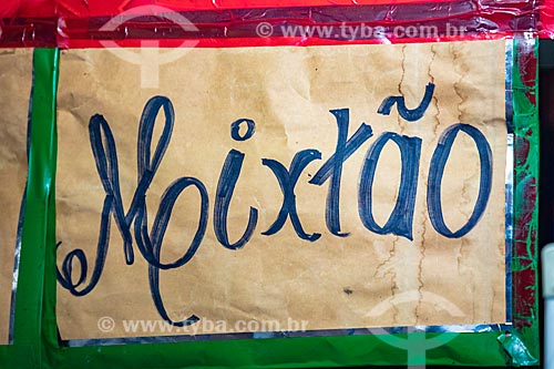 •  Detail of plaque that says: Baiao de dois and mixtao - restaurant - Luiz Gonzaga Northeast Traditions Centre  - Rio de Janeiro city - Rio de Janeiro state (RJ) - Brazil