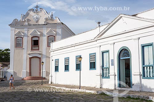 Our Lady of the Good Death Church (1779) - also now houses the Museum of Sacred Art of Boa Morte - to the left - with the Conde dos Arcos Palace - to the right - Goias city - Goias state (GO) - Brazil