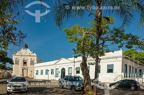 •  Facade of the Conde dos Arcos Palace with the Our Lady of the Good Death Church (1779) - also now houses the Museum of Sacred Art of Boa Morte - in the background  - Goias city - Goias state (GO) - Brazil
