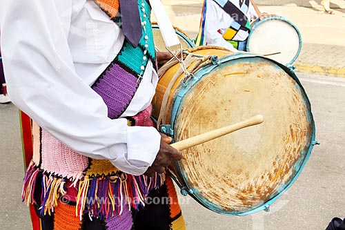 Detail of member of congada playing drum during the Party to Saint Benedict - Aparecida city - Sao Paulo state (SP) - Brazil