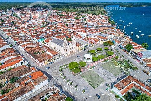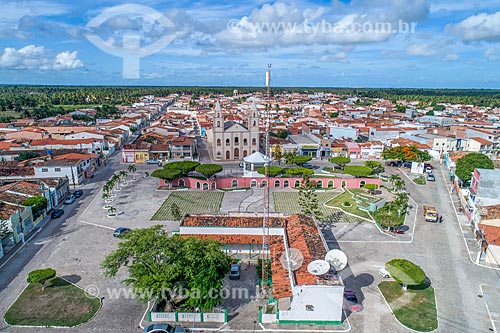 Picture taken with drone of the Piacabucu City Hall with the Saint Francis of Borja Church (1899) in the background - Piacabucu city - Alagoas state (AL) - Brazil