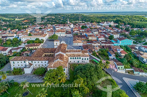 Picture taken with drone of the Saint Francis Square with the Old church and Holy House of Mercy - current Home of Sisters of the Immaculate Conception - to the left - and Historical Museum of Sergipe - Sao Cristovao city - Sergipe state (SE) - Brazil