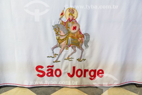 • Embroidered with the image of Saint George on fabric on the altar - Church of the Martyrs Sao Gonçalo Garcia and Sao Jorge, better known as the Church of Sao Jorge - Located on the corner of Alfandega Street and Republica Square - Rio de Janeiro city - Rio de Janeiro state (RJ) - Brazil