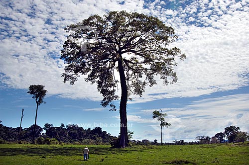 •  Subject: Man observes Kapok tree (Ceiba pentandra) located on the edge of Ariau River / Place: Amazonas state (AM) - Brazil / Date: 09/2013
