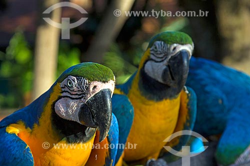 Detail of blue-and-yellow macaw (Ara ararauna) - also known as the Blue-and-gold Macaw - San Domingos Farm - Miranda city - Mato Grosso do Sul state (MS) - Brazil