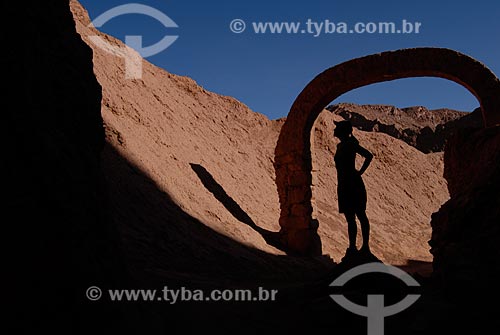 Tourist - Atacama Desert with the Licancabur Volcano in the background - San Pedro de Atacama city - El Loa Province - Chile