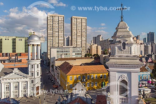 Picture taken with drone of belfry of the Our Lady of Rosario de Sao Benedito Church (1946) with the Independent Presbyterian Church of Curitiba in the background - Curitiba city - Parana state (PR) - Brazil