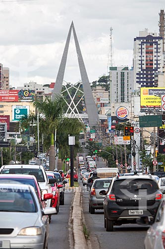 •  Traffic - 85 Avenue with the monument known as Espetos - Joao Alves de Queiroz Viaduct in the background  - Goiania city - Goias state (GO) - Brazil