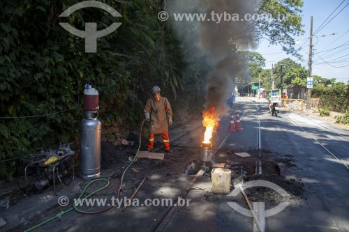 Maintaining the Santa Teresa Tram tracks - Rio de Janeiro city - Rio de Janeiro state (RJ) - Brazil