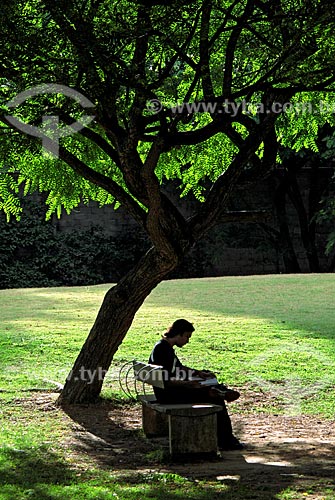 •  Subject: Young man reading book in Juventude Park / Place: Santana neighborhood - Sao Paulo city - Sao Paulo state (SP) - Brazil / Date: 11/2009