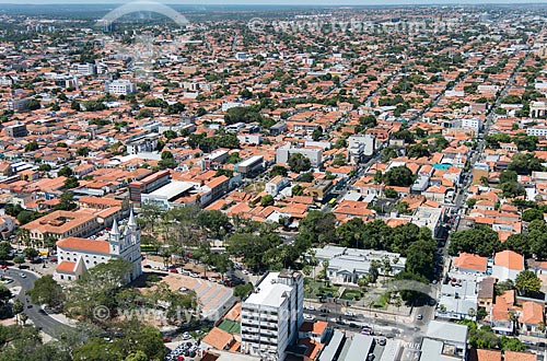 •  Aerial photo of the Sao Benedito Church (1886) - to the left - and the Karnak Palace (1953) - headquarters of the State Government - to the right - with houses of city center neighborhood  - Teresina city - Piaui state (PI) - Brazil