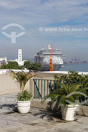 View of cruise ship in Pier Maua from mirante of the Sao Bento Monastery - Rio de Janeiro city - Rio de Janeiro state (RJ) - Brazil