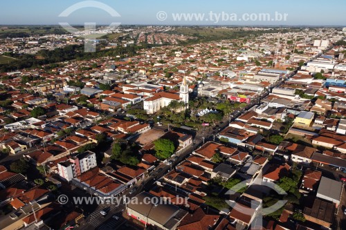 Picture taken with drone of the city and Parish of Sao João Batista in Barao do Rio Branco Square - Bebedouro city - Sao Paulo state (SP) - Brazil