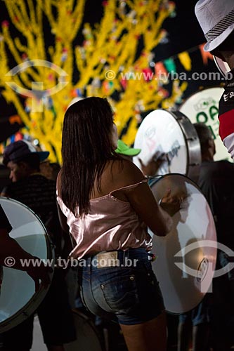 •  Woman playing tambourine during party of the Death of Ox - time of death of the main character of the Bumba-meu-boi  - Sao Jose de Ribamar city - Maranhao state (MA) - Brazil
