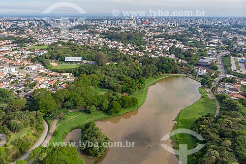 Picture taken with drone of the artificial lake - Sao Lourenco Park (1972) - Curitiba city - Parana state (PR) - Brazil