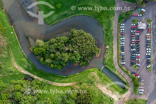 •  Picture taken with drone of snippet of the Barigui River with parking of Sao Lourenco Park (1972)  - Curitiba city - Parana state (PR) - Brazil