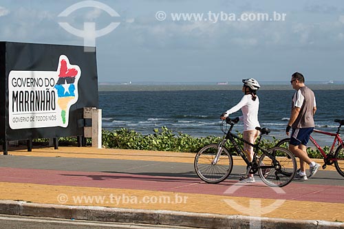 •  Cyclists - bike lane - boardwalk of Calhau Beach  - Sao Luis city - Maranhao state (MA) - Brazil